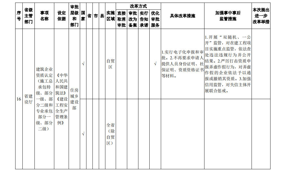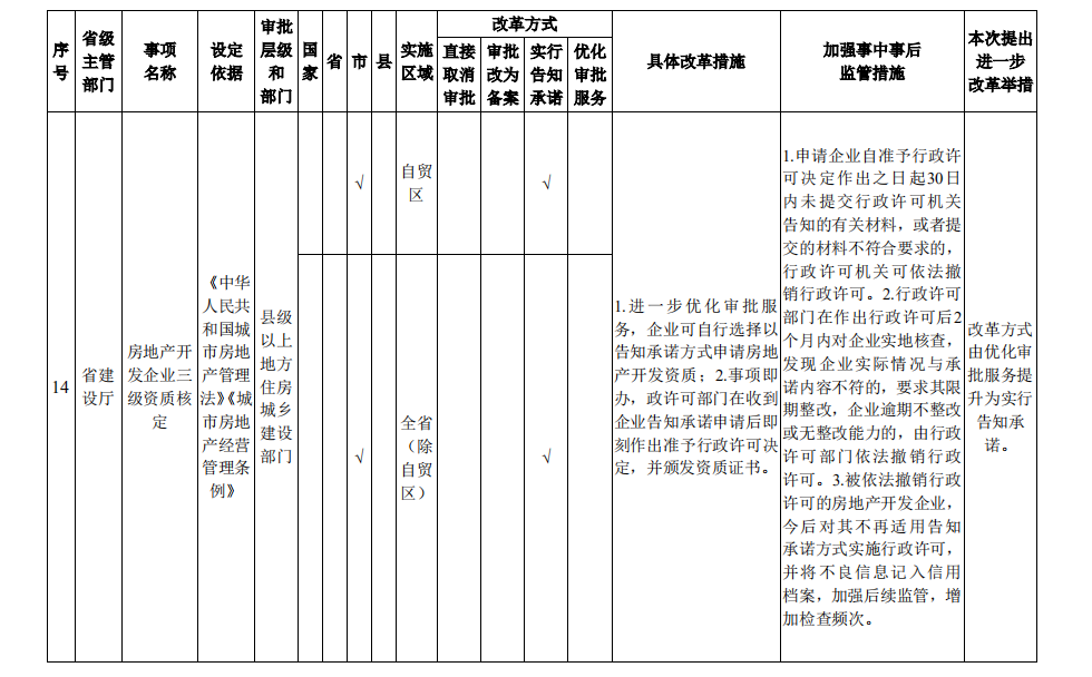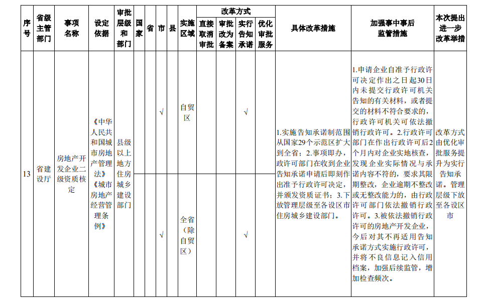 房地產(chǎn)開發(fā)企業(yè)四級資質(zhì)核定。此外,在自貿(mào)區(qū)內(nèi)進行深入改革: