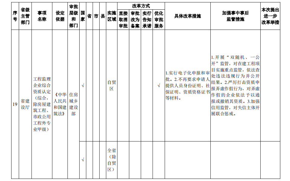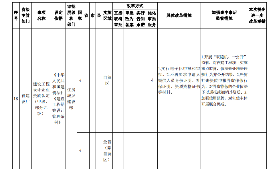 方案指出,在全省范圍內(nèi),對11項涉企經(jīng)營許可事項實行告知承諾,明確“申請人作出承諾的,經(jīng)形式審查后可當場作出審批決定”。包括: 工程造價咨詢企業(yè)乙級資質(zhì)認定;