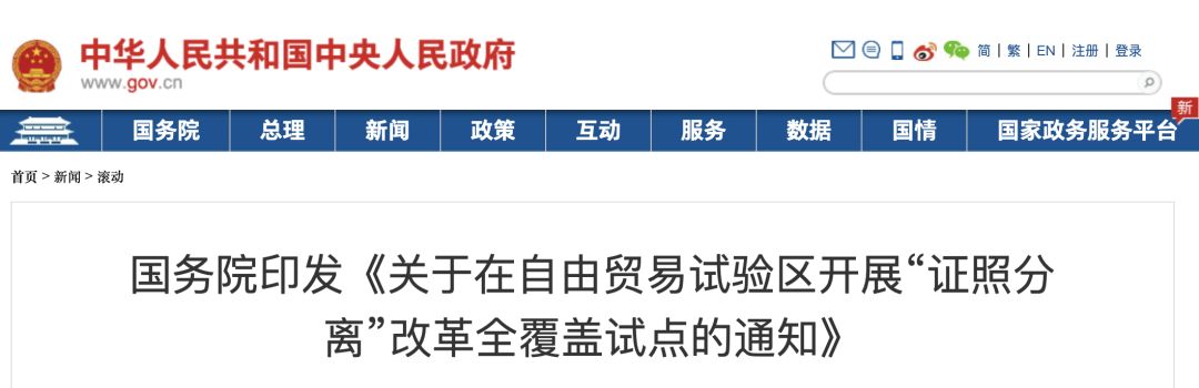 開展“證照分離”改革全覆蓋試點(diǎn)的通知